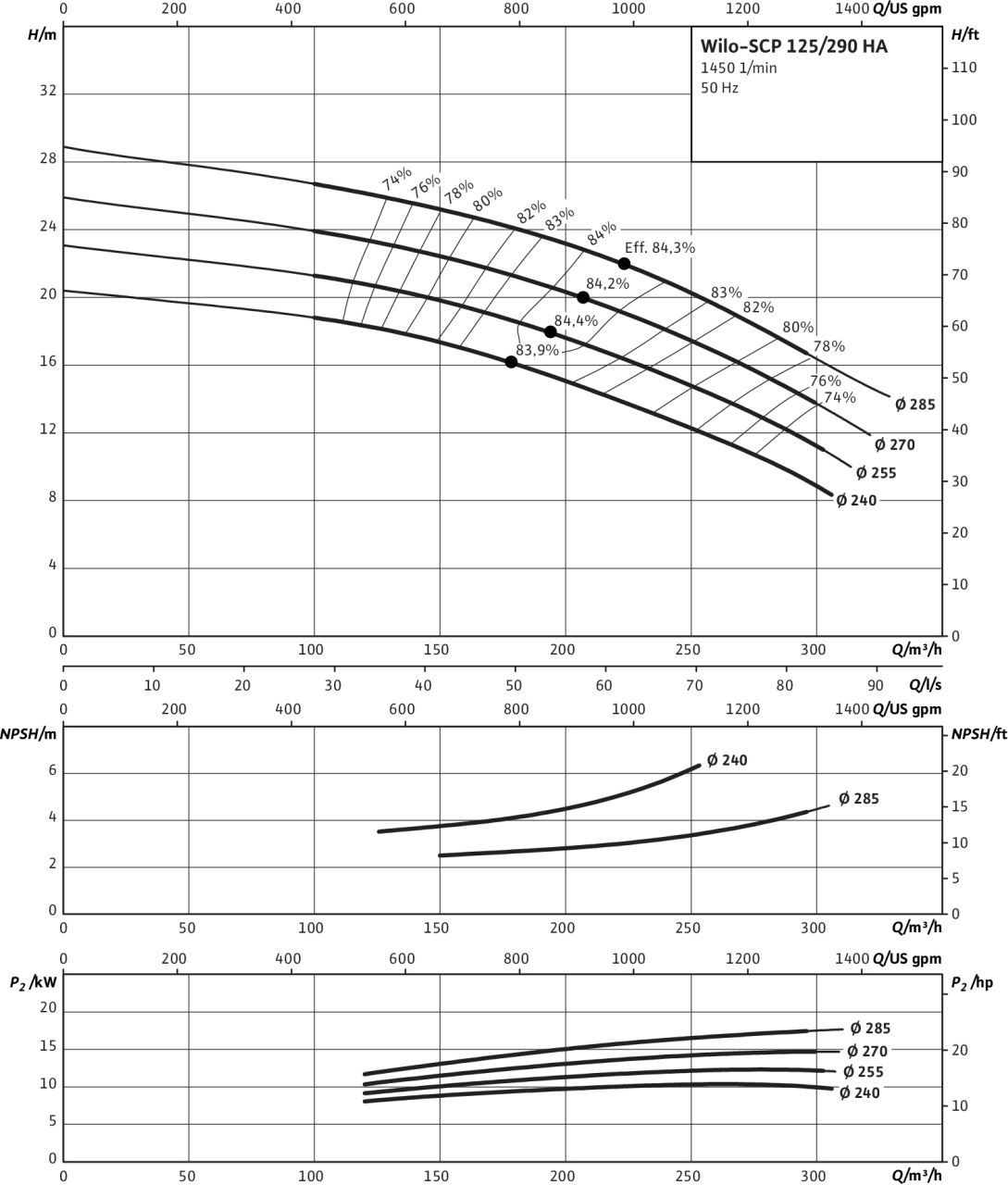 | Номинальный внутренний диаметр фланца (с напорной стороны) | DN 125 |