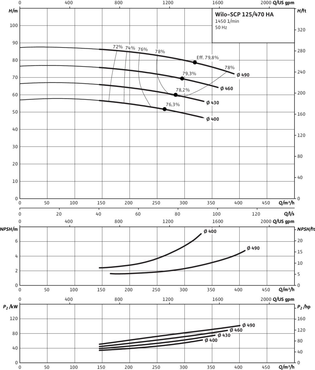 | Номинальный внутренний диаметр фланца (с напорной стороны) | DN 125 |