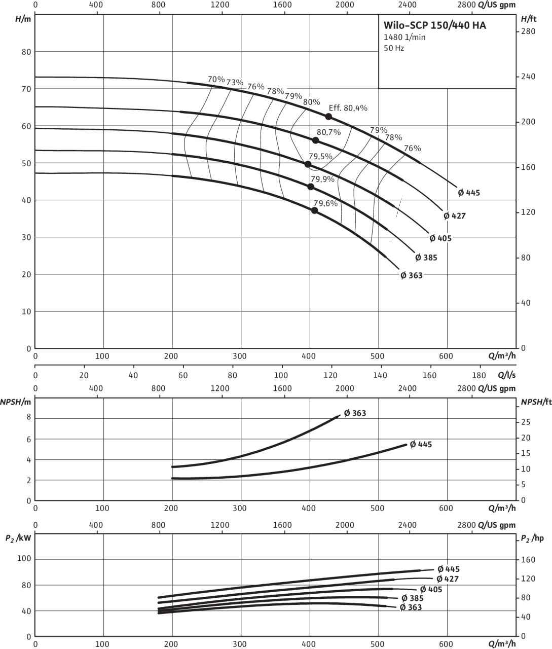| Номинальный внутренний диаметр фланца (с напорной стороны) | DN 150 |