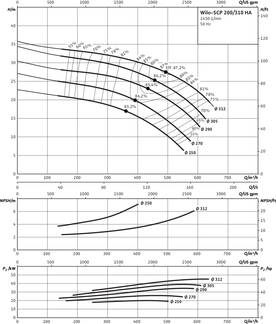 • Низкое значение допускаемого кавитационного запаса благодаря рабочему колесу двустороннего всасывания