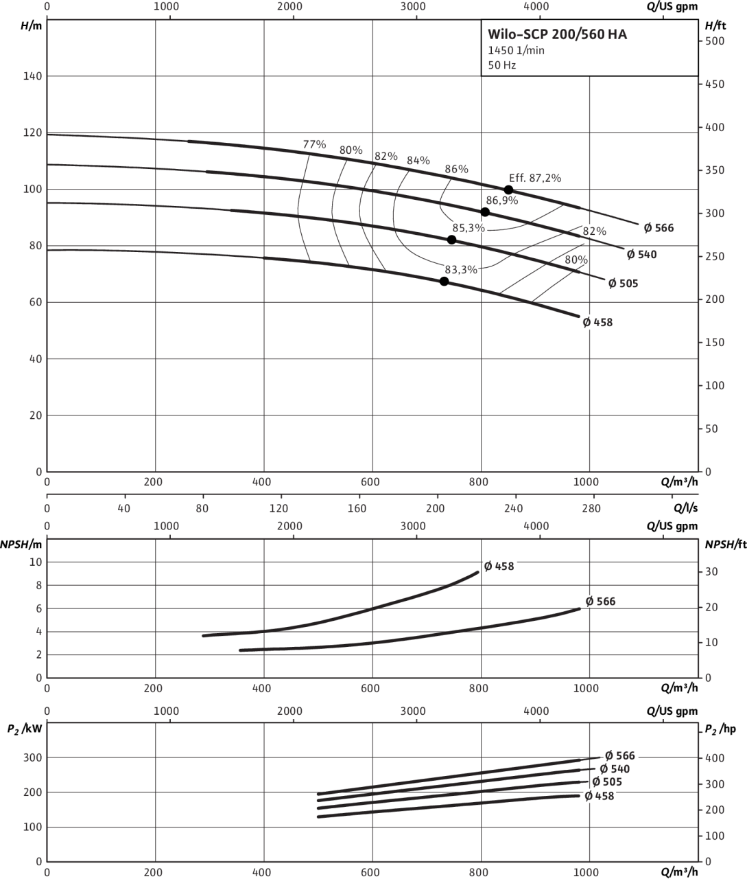 | Номинальный внутренний диаметр фланца (с напорной стороны) | DN 200 |