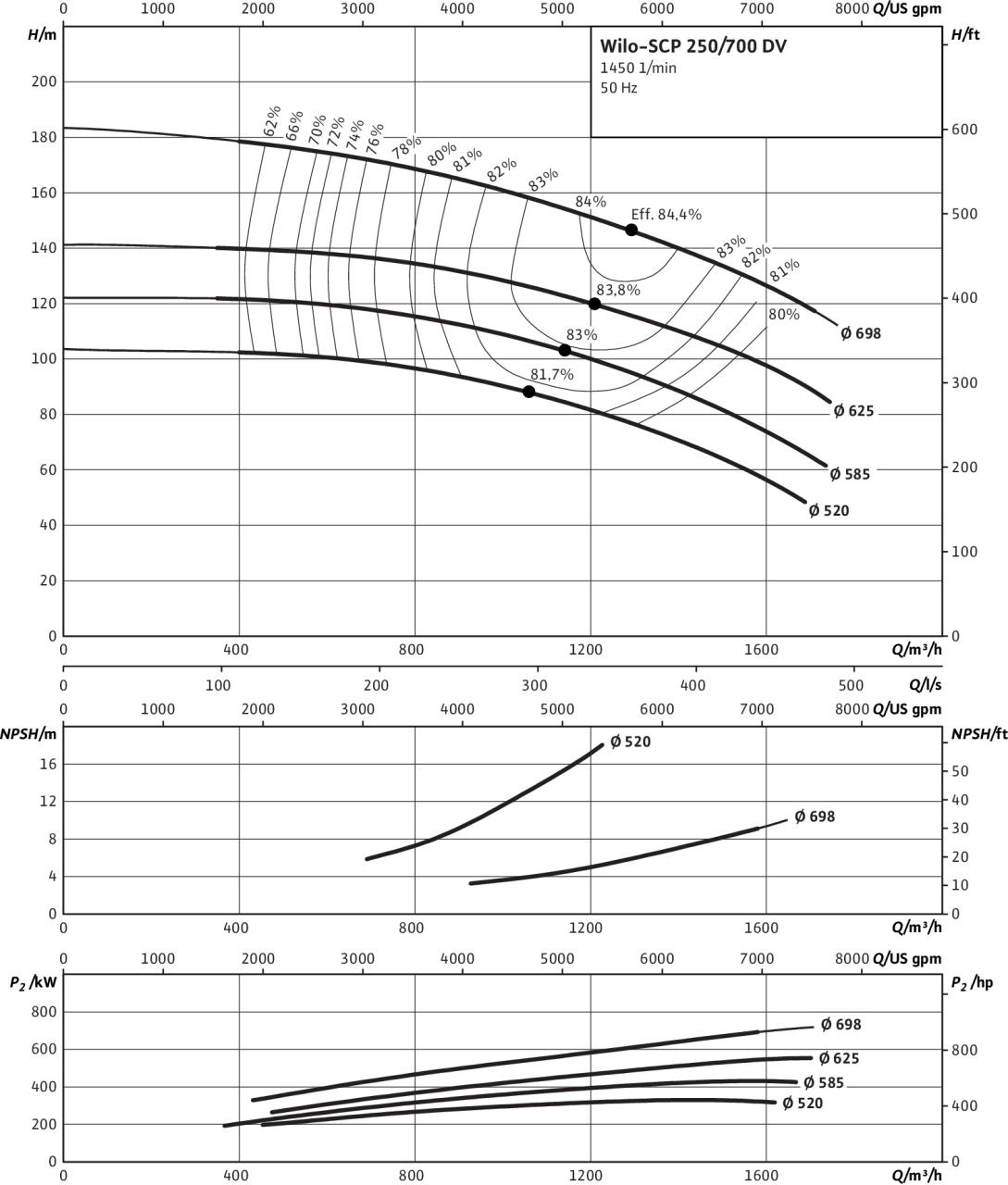 • Низкое значение допускаемого кавитационного запаса благодаря рабочему колесу двустороннего всасывания