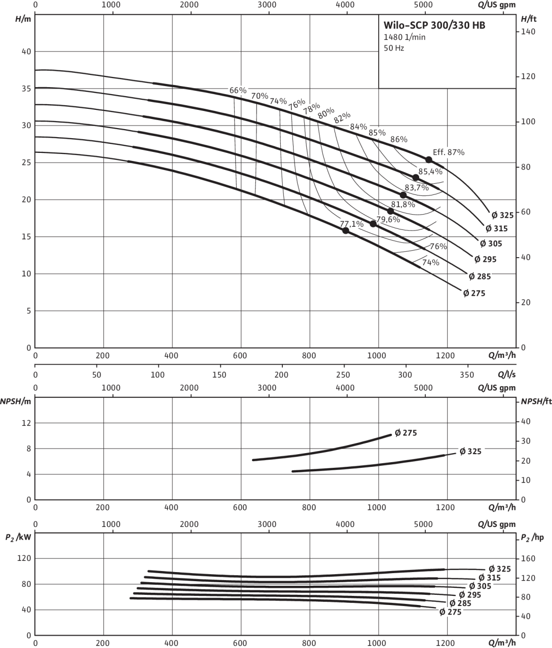| Номинальный внутренний диаметр фланца (на стороне всасывания) | DN 350 |