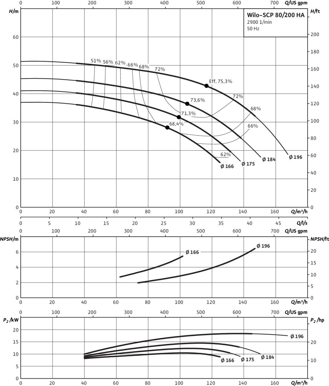 • Низкое значение допускаемого кавитационного запаса благодаря рабочему колесу двустороннего всасывания