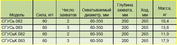 Съёмники наружного захвата с гидроусилителем моделей от СГУСЬ082,СГУСь083,СГУСьК082 и СГУСьК083- базовые модели съёмников. Два и три захвата.