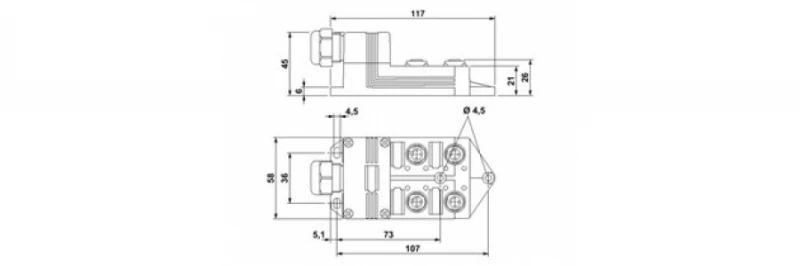 Sensor/Aktor Box, M12 гнезда и соединитель для магистрального кабеля