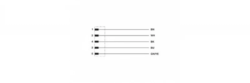 - Цветовая маркировка жил: коричневый, белый, голубой, чёрный, жёлто/зелёный