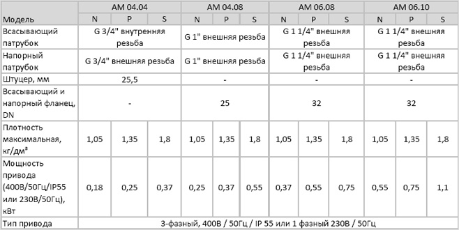 Насосы серии AM имеют компактные размеры, перекачивают жидкости плотностью до 1.8 кг/д м³ и вязкостью до 20 мПа.с