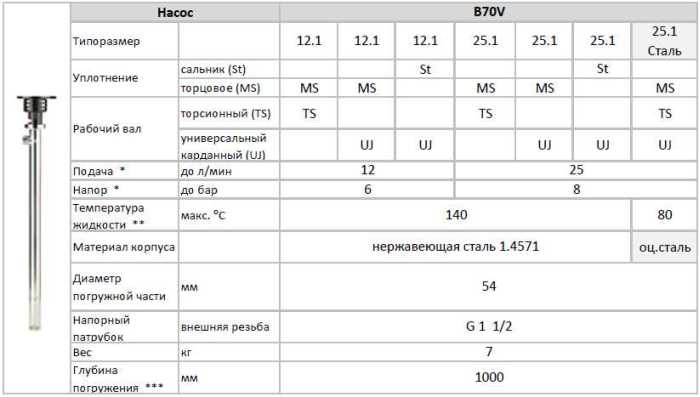 Модели винтовых бочковых насосов серии B70V-D 12.1 и 25.1