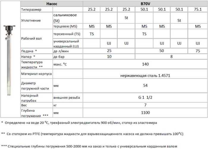 Модели винтовых бочковых насосов серии B70V-D 25.2, 50.1 и 75.1