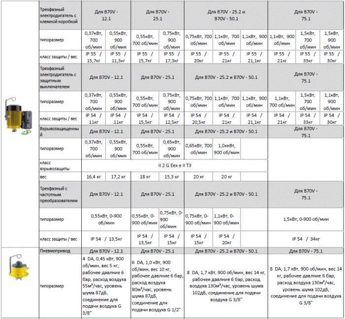 В качестве приводов насосы используют трехфазные электродвигатели 380В или пневмоприводы серии DA.