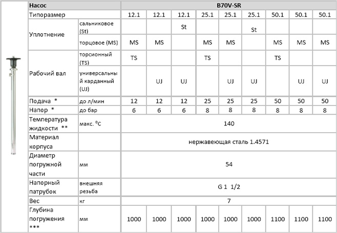 Выбор приводов для винтовых бочковых насосов серии B70V-SR