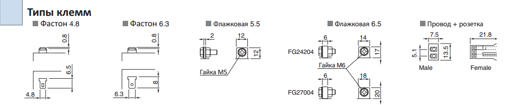 | 12FGH23 | 12 | 5.0 | 2.10 | 90 | 70 | 101 | 107 | 75 | 1.25 | фастон 6,3 |
