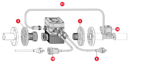 Подключение расходомера к магистрали в режиме измерение с программированием: |