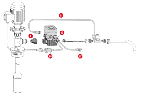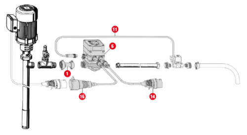 Подключение расходомера к бочковому насосу в режиме измерение с программированием: |