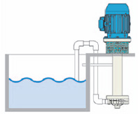 Насосы B80 HME серии могут монтироваться за пределами емкости. Так называемая «сухая» установка. Жидкость проходит внутри погружной колонны и возвращается в емкость через перепускную линию. «Сухая» установка насоса облегчает обслуживание и ремонт оборудования.