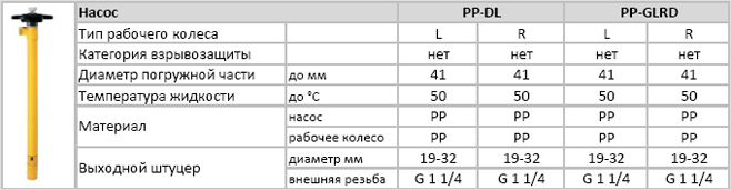 Модели бочковых насосов серии PP: DL- без уплотнения, GLRD — с уплотнением