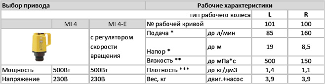 Комплектуются насосы различными типами приводов: электродвигателями от 460 до 795 Вт и пневмодвигателями 400Вт.