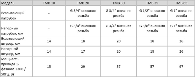 Модели насосов c магнитной муфтой серии TMB