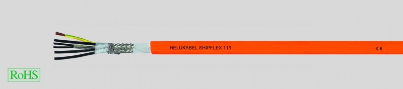 Кабель HELUKABEL® SHIPFLEX® 113 — это новая разработка для буксируемых цепей, протестирован с учётом специфических потребностей и строгих требований применения в прибрежных зонах. Этот кабель сочетает в себе жилы питания с жилами управления. Данный кабель, соответствующий требованиям двух стандартов, имеет сертификат Регистра Ллойда. Внешняя PUR-оболочка с низким коэффициентом трения позволяет использовать кабель в масляной среде и жёстких окружающих условиях..