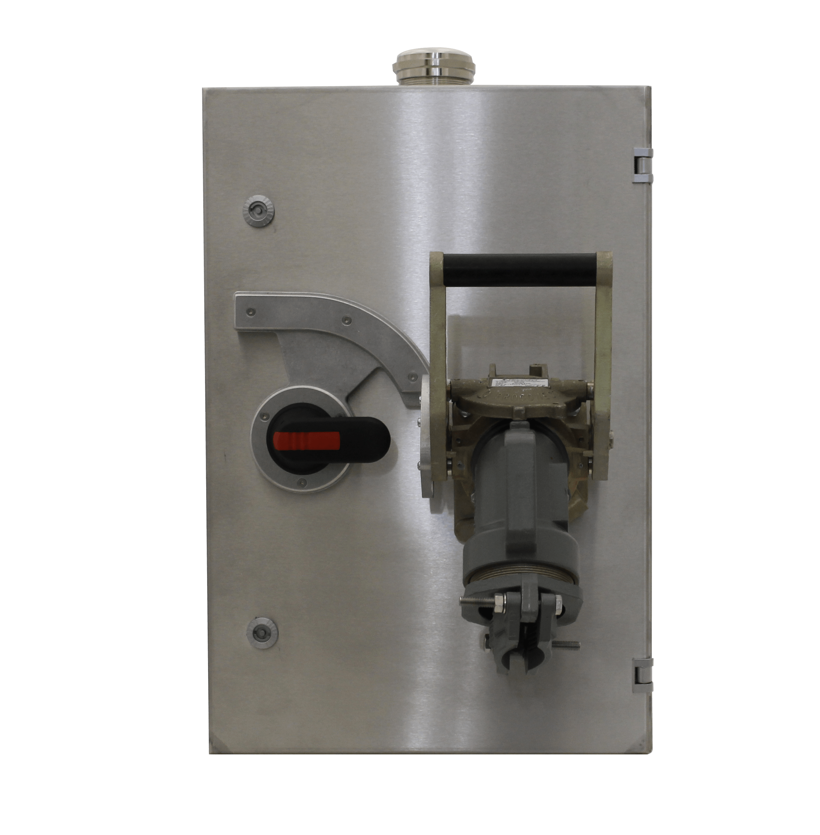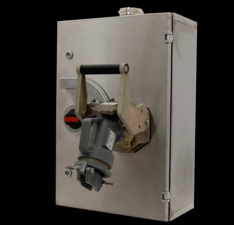 Настенный силовой шкаф с розеткой с блокировкой EC-MSI-X4DE470. Рассчитан на ток 250 Ампер и контактную группу 3P+N+E+2p. Рекомендуется использовать при напряжении электрического тока до 3,3 кВ. Степень защиты соответствует стандарту IPХ66.