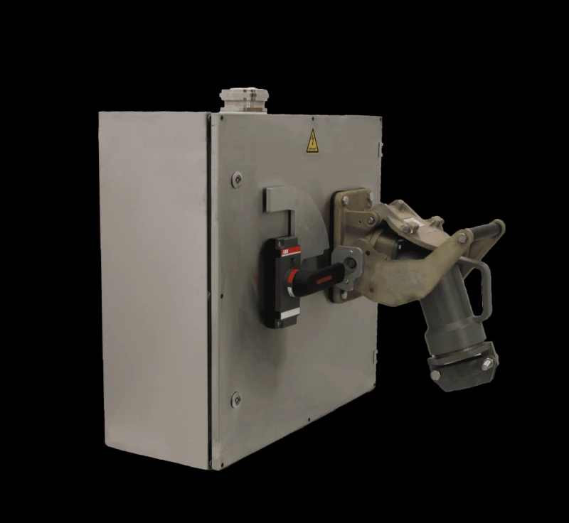 Настенный силовой шкаф с розеткой с блокировкой EC-MSI-X5DE395. Рассчитан на ток 320 Ампер и контактную группу 3P+E+2p. Рекомендуется использовать при напряжении электрического тока до 3,3 кВ. Степень защиты соответствует стандарту IP66.