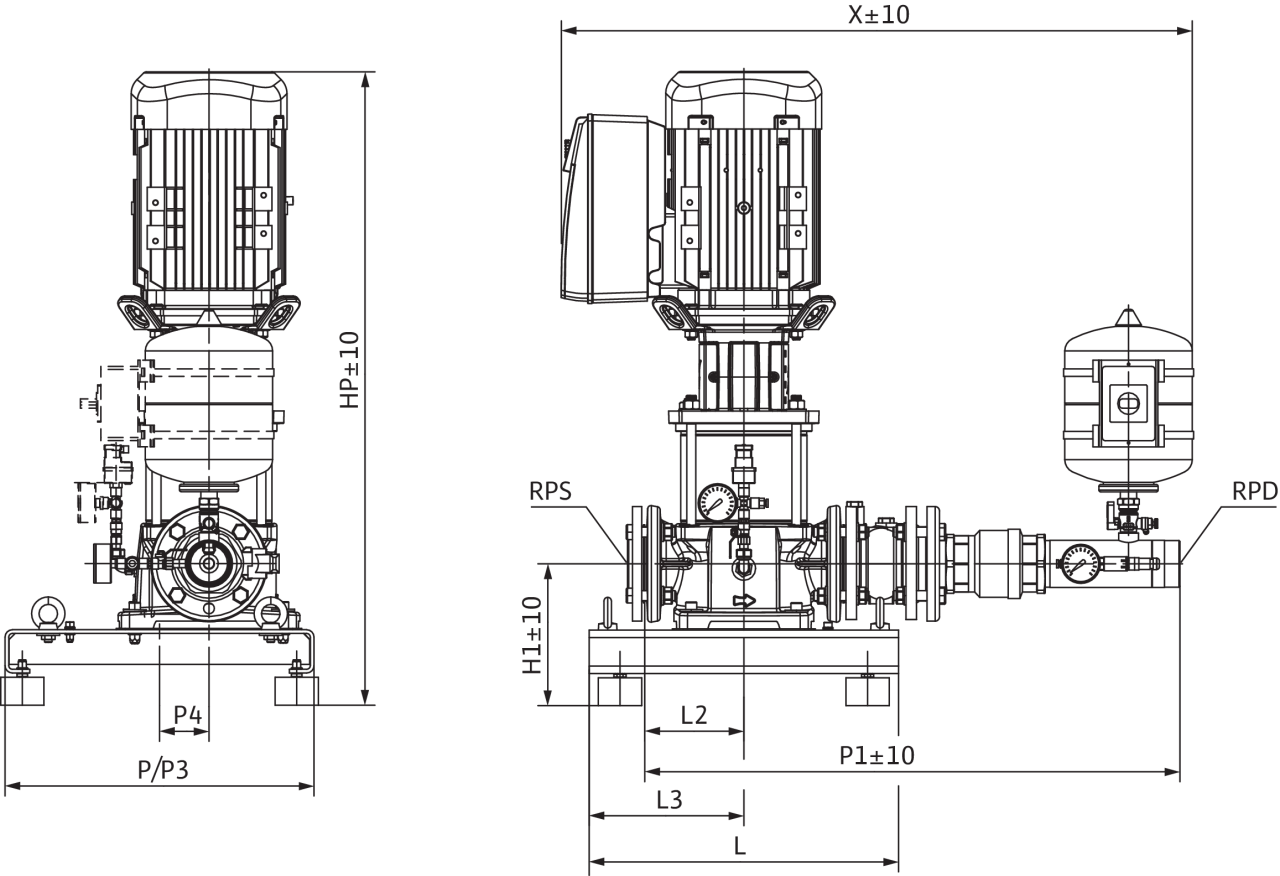 Готовность к подключению, установка на опорной раме и соединение трубопроводами с запорной арматурой с напорной стороны.