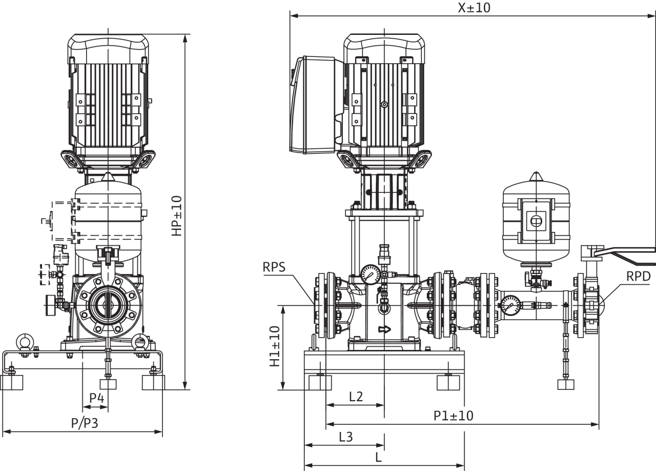 Высокоэффективная, готовая к подсоединению установка для водоснабжения (нормальновсасывающая) с 1 вертикально расположенным высоконапорным центробежным насосом из нержавеющей стали в исполнении с сухим ротором серии Helix VE.