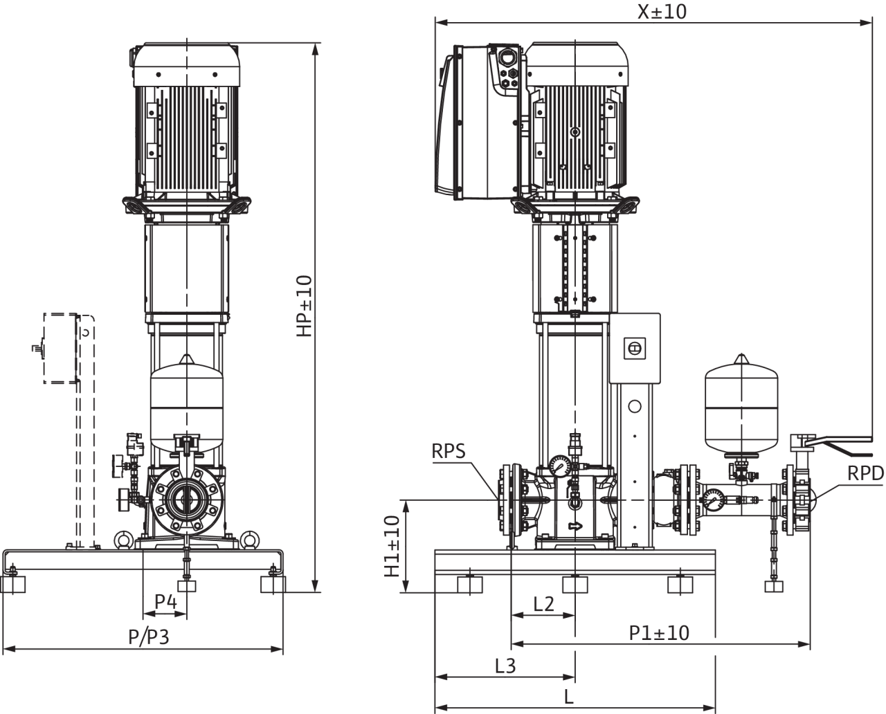Высокоэффективная, готовая к подсоединению установка для водоснабжения (нормальновсасывающая) с 1 вертикально расположенным высоконапорным центробежным насосом из нержавеющей стали в исполнении с сухим ротором серии Helix VE.