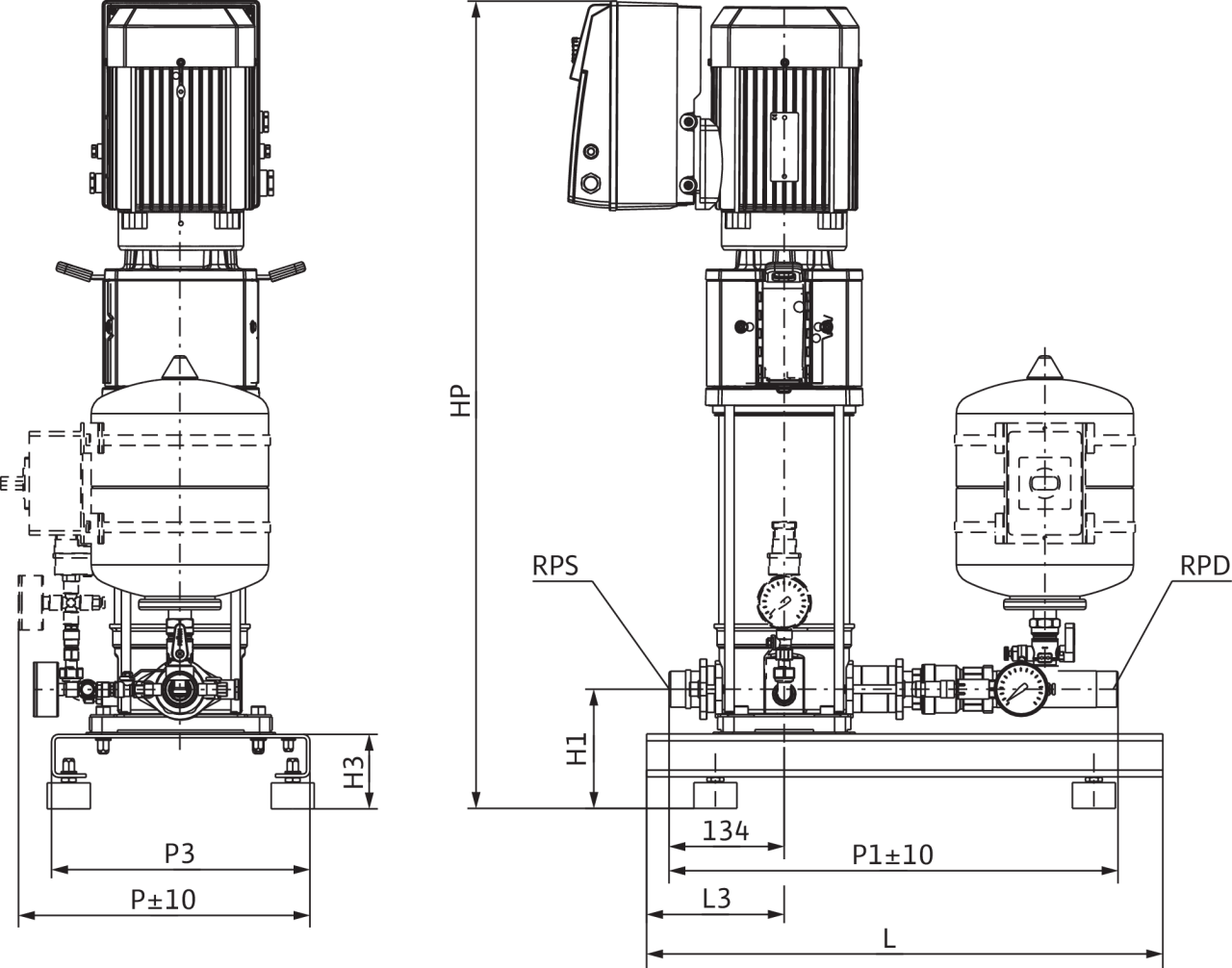 Высокоэффективная, готовая к подсоединению установка для водоснабжения (нормальновсасывающая) с 1 вертикально расположенным высоконапорным центробежным насосом из нержавеющей стали в исполнении с сухим ротором серии Helix VE.
