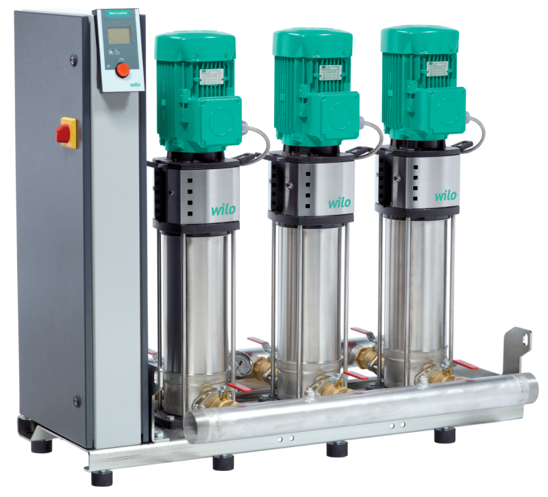 Компактная установка повышения давления согласно стандарту DIN 1988 и DIN EN 806, для прямого или опосредованного подсоединения. Состоит из нормальновсасывающих параллельно подключенных вертикальных высоконапорных центробежных насосов из нержавеющей стали с сухим ротором. Готовность к подключению, установка на опорной раме с системой трубопроводов из нержавеющей стали, включая прибор управления со всеми необходимыми измерительными и регулировочными устройствами.