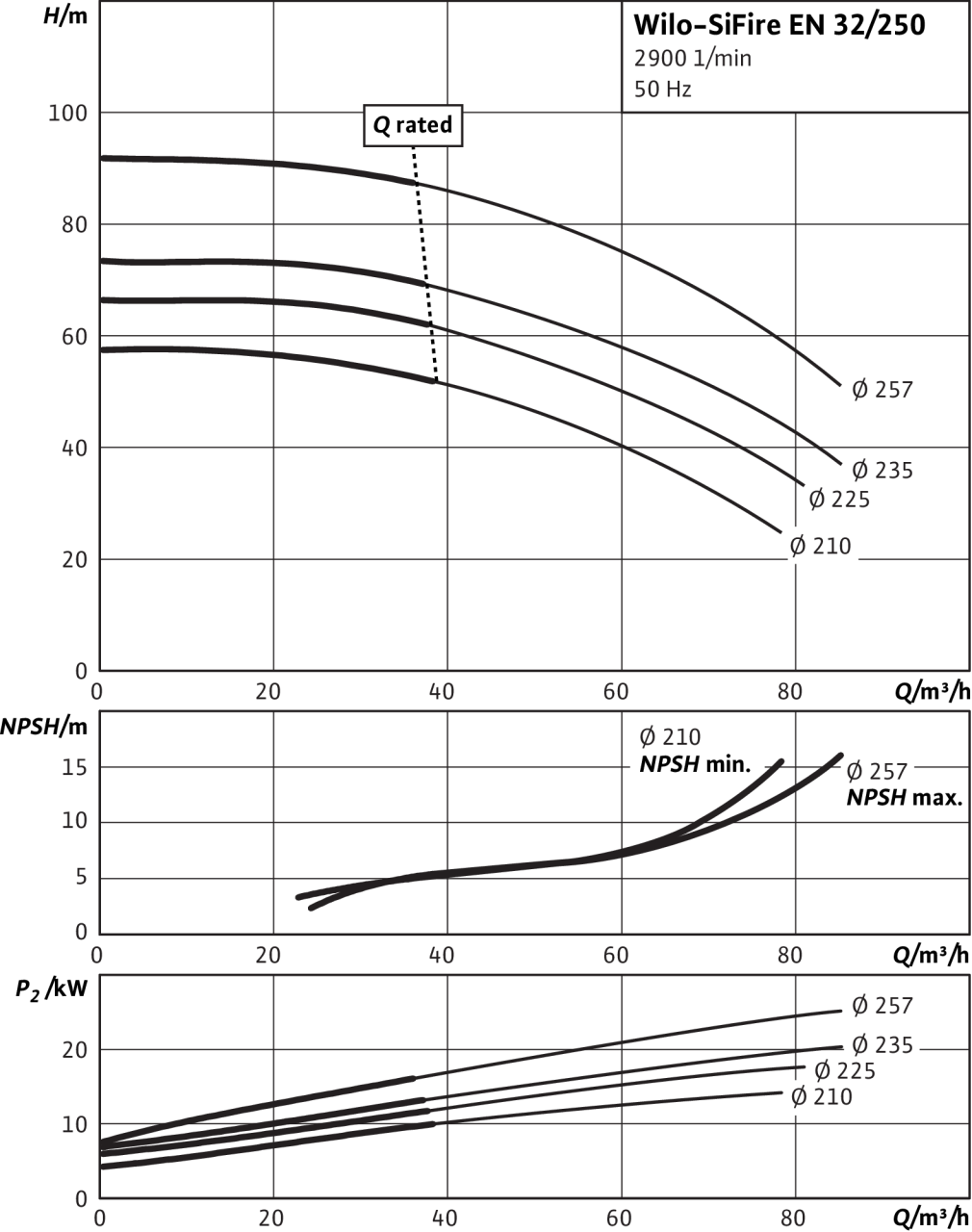 | Номинальные внутренние диаметры трубы с напорной стороны RPD | DN 65 |