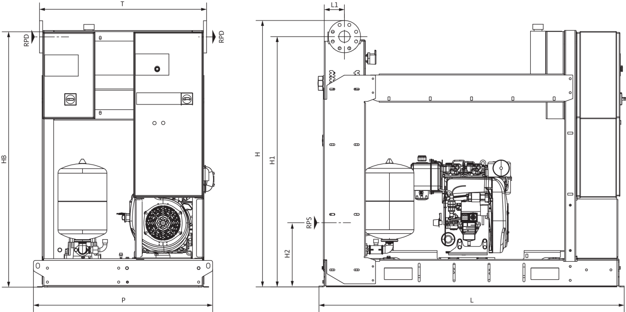 Состоит из насоса с горизонтальной опорной рамой (EN 733), со сменной муфтой, дизельным двигателем и многоступенчатым вертикальным подпитывающим электронасосом, мембранным напорным резервуаром (емкость: 20 л), а также распределительным шкафом для каждого насоса, закрепленным на прочной поддерживающей конструкции.
