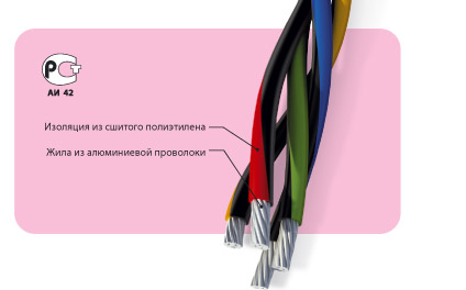 Провод самонесущий с алюминиевыми жилами, с изоляцией из светостабилизированного сшитого полиэтилена, с нулевой несущей неизолированной жилой из алюминиевого сплава |