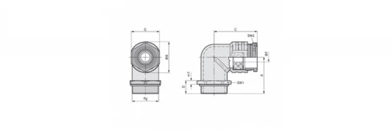 | Артикул | Наименование | A, мм | G, мм | ØB, мм | ØF уплот. кольца, мм | C, мм | D, мм | SW1 / SW2, мм |