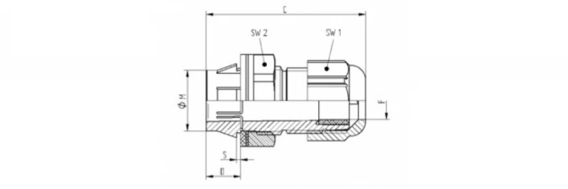 | Артикул | Наименование | Диапазон зажима ØF мм | M (отверстие, мм) | SW1 / SW2, мм | C, мм | D, мм | S (толщина стенки, мм) |