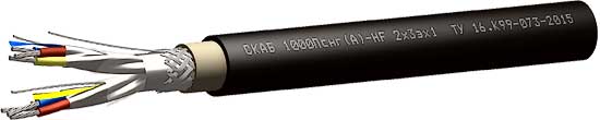| Тройки с многопроволочными медными лужеными жилами сечением от 0,35 до 2,5 мм2 с изоляцией из сшитого полиэтилена, В индивидуальном экране из алюмолавсановой ленты с контактным проводником из медной лужёной проволоки; общий экран из алюмолавсановой ленты с контактным проводником из медной лужёной проволоки и в оплётке из медных лужёных проволок плотностью 40%. Оболочка из сшитой полимерной композиции, не содержащей галогенов. |
