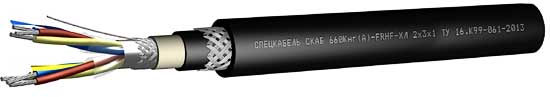 | Тройки с многопроволочными медными лужеными жилами сечением от 0,5 до 2,5 мм² с изоляцией из огнестойкой кремнийорганической резины, в экране из алюмолавсановой ленты с контактным проводником и в оплётке из медных лужёных проволок плотностью 40%. Оболочка из ПВХ пластиката пониженной пожароопасности (СКАБ 660Кнг (А)-FRLS), полимерной композиции, не содержащей галогенов (СКАБ 660Кнг (А)-FRHF-ХЛ) или безгалогенного термопластичного полиуретана (СКАБ 660КУнг©-FRHF-ХЛ).Броня в виде оплетки из стальных оцинкованных проволок. Защитный шланг из ПВХ пластиката пониженной пожароопасности (СКАБ 660Кнг (А)-FRLS), полимерной композиции, не содержащей галогенов (СКАБ 660Кнг (А)-FRHF-ХЛ) или безгалогенного термопластичного полиуретана (СКАБ 660КУнг©-FRHF-ХЛ). |