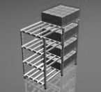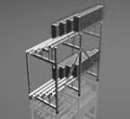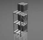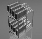 Многоярусные стеллажи разработанные для установки батарей герметизированного типа в вертикальном и горизонтальном положении. Стеллажи удобны в монтаже и демонтаже, так как основными компонентами этих стеллажей являются боковые многоуровневые опорные элементы и профильные балки.