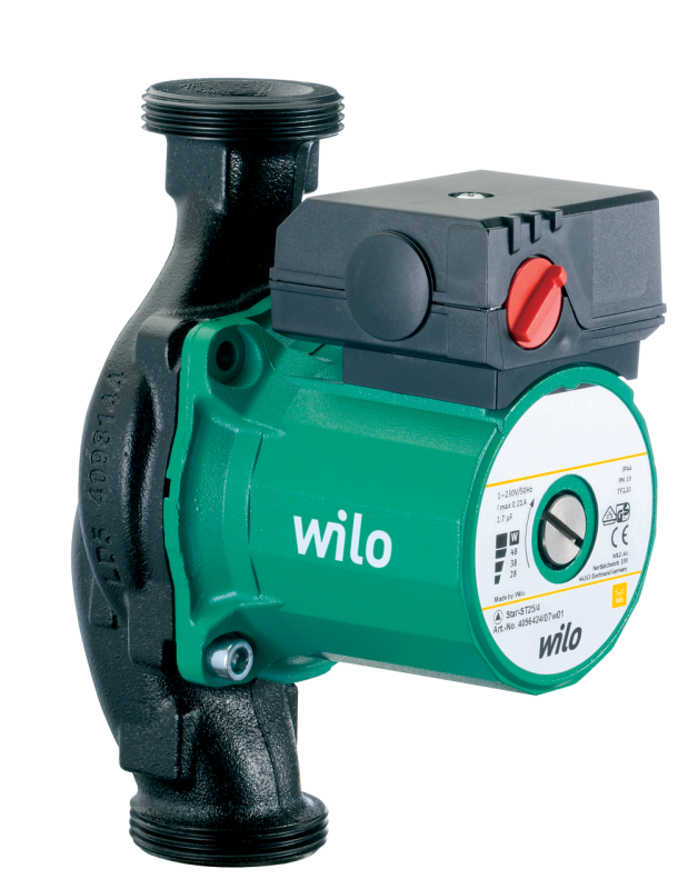 Циркуляционный насос с мокрым ротором со специальной гидравлической системой для применения в первичных контурах солнечных и геотермальных установок. С ручным трехступенчатым переключением частоты вращения и однофазным электродвигателем, устойчивым к токам блокировки. Корпус насоса из серого чугуна с катафорезным покрытием. Рабочее колесо из полипропилена, упрочненного стекловолокном. Вал из нержавеющей стали с угольными подшипниками скольжения с металлической пропиткой.
