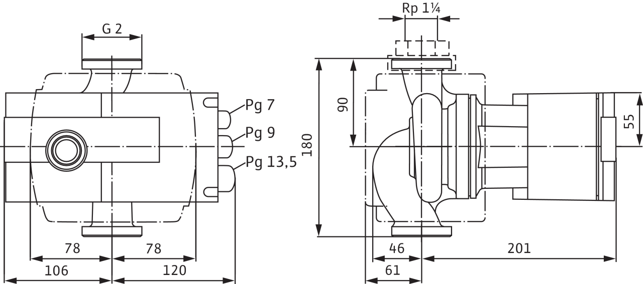 • Стандартное исполнение для насосов DN 80/DN 100: фланец PN 6 (рассчитан PN 16 согласно EN 1092-2) для контрфланца PN 6