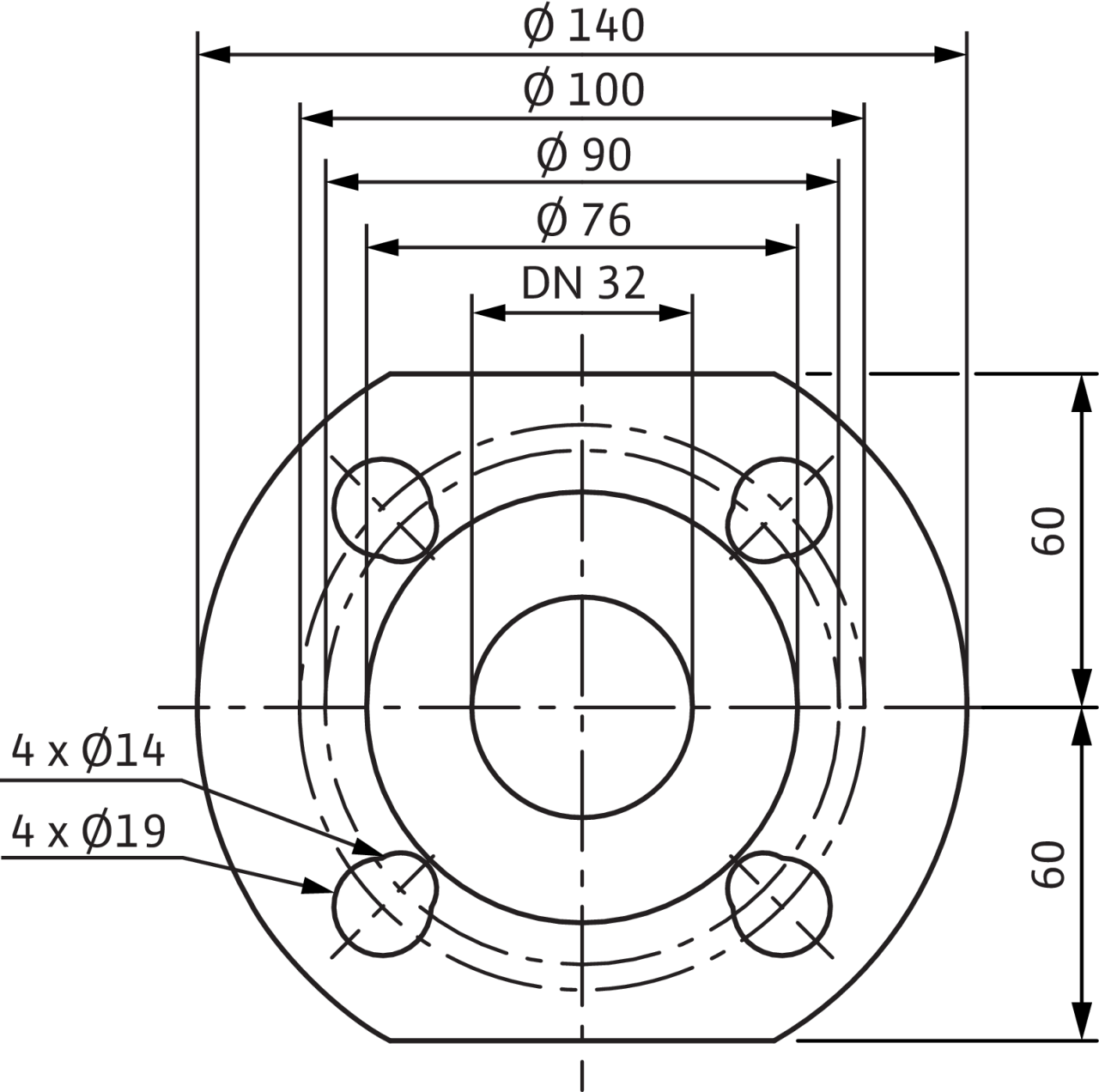 | Номинальный внутренний диаметр фланца | DN 32 |
