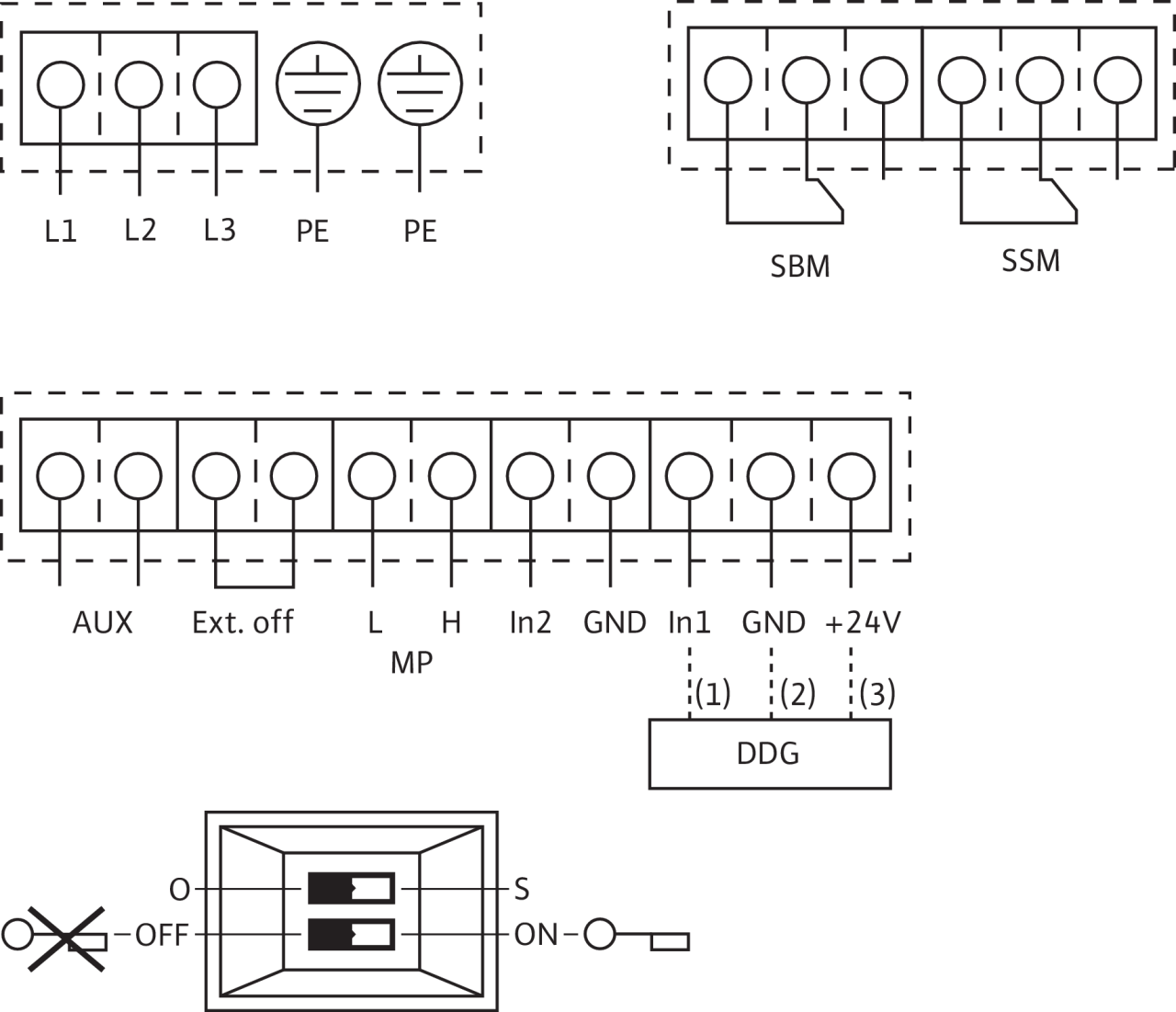 | SBM:* | беспотенциальная обобщенная сигнализация рабочего состояния (переключающий контакт по VDI 3814) |
