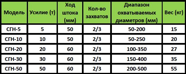 Съёмники с наружным захватом моделей СНГ. Для работы применяется дополнительное оборудование насос.