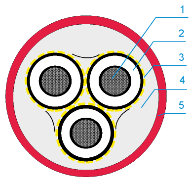 Данный тип кабеля предназначен для постоянной эксплуатации в воде при высоких механических нагрузках, напр., для подключения драг, плавучих доков, насосов и пр.Устройство