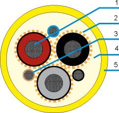 | Число жил х номинальное поперечное сечение мм2 | Индуктивное сопротивление при 50 Гц, ок. Ом/км | Емкость Проводник заземление, ок. мкФ/км | Внешний диаметр, мин./ макс. мм | Вес, ок. кг/км |