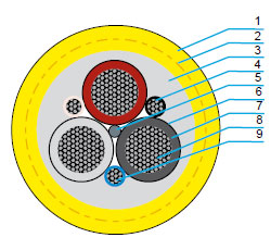 Жила управления (9) | Растяжимые и пластичные жилы из меди и стали, покрытые резиновой смесью 3GI3 EPR.