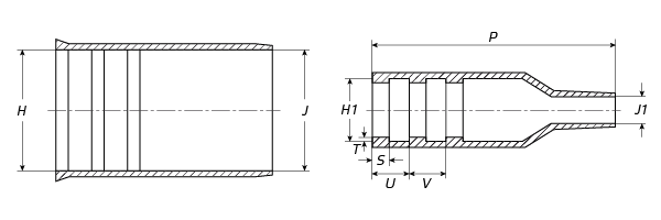 | Наименование, цвет | H(мм) | H1(мм) | J(мм) | J1(мм) | P(мм) | S(мм) | T(мм) | U&V(мм) | Вид перехода |