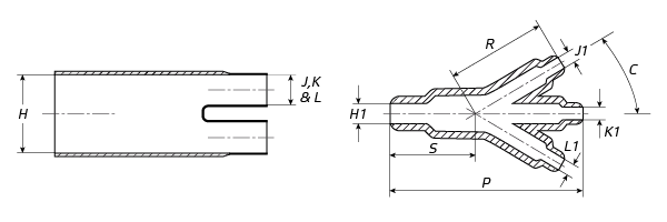 | Наименование, цвет | H(мм) | H1(мм) | J(мм) | J1(мм) | K(мм) | K1(мм) | L(мм) | L1(мм) | P(мм) | R(мм) | S(мм) | C°(мм) | Вид перехода |