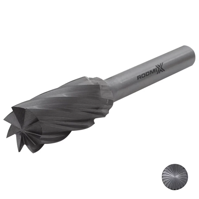 Рабочая часть борфрез Rodmix выполнена из высококачественного твердосплава, аналога ВК8 (твердый карбид вольфрамовый сплав), и соединяется с хвостовиком прогрессивным способом, что в совокупности обеспечивает высокий ресурс, износостойкость и качество обрабатываемой детали (зачистку кромок и швов сварки, скругление краёв, удаление заусенец, обработка пазов, подгонка деталей и многое другое).